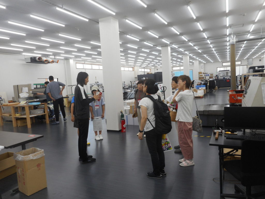 8月8日(金)市民三学長島委員会の夏休み行事として、株式会社デジタの企業見学に行ってきました。小中学生10名、大人16名が参加。大井町観音寺の本社にて3班に分かれて説明を聞きました。全国から毎日700件以上の注文がインターネットで入り、シールやステッカー、パッケージ、缶バッジなどを現代のIT技術を活用して製造・出荷。従業員の平均年齢33歳と若く服装なども自由で、参加者の皆さんが「今の時代に合った現代的な会社と思った」と話していました。子どもたちからは、「機械がいっぱいあっていろいろなしくみが分かって良かった」「お客様ファーストで作っていたのですごいと思った」など、みなさん参加出来てとてもよかったという意見でした。こんなに若い人がたくさんいきいきと働くことの出来る会社が恵那市にある事を知る事が出来、有意義な時間となりました。