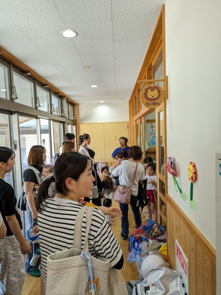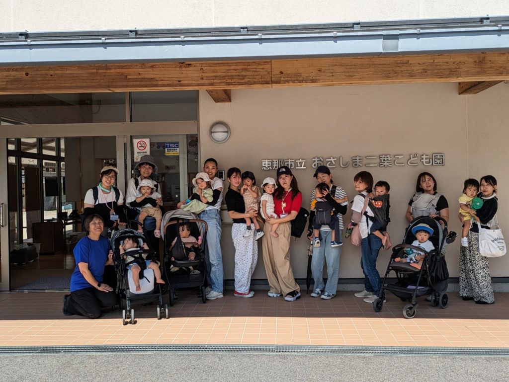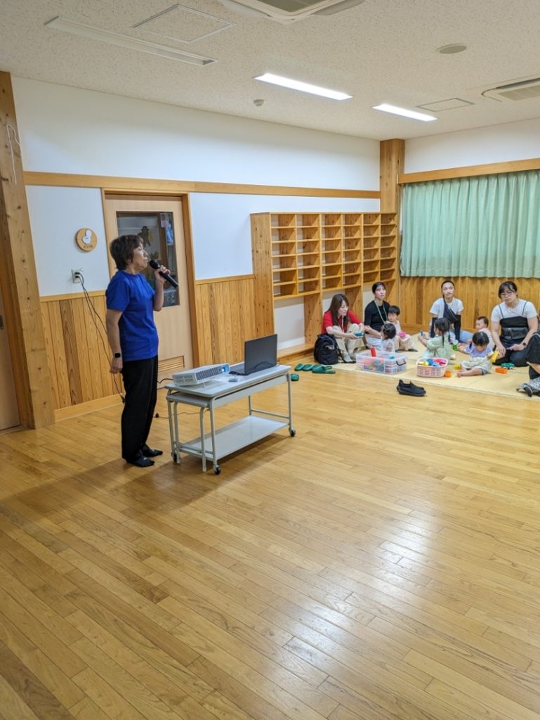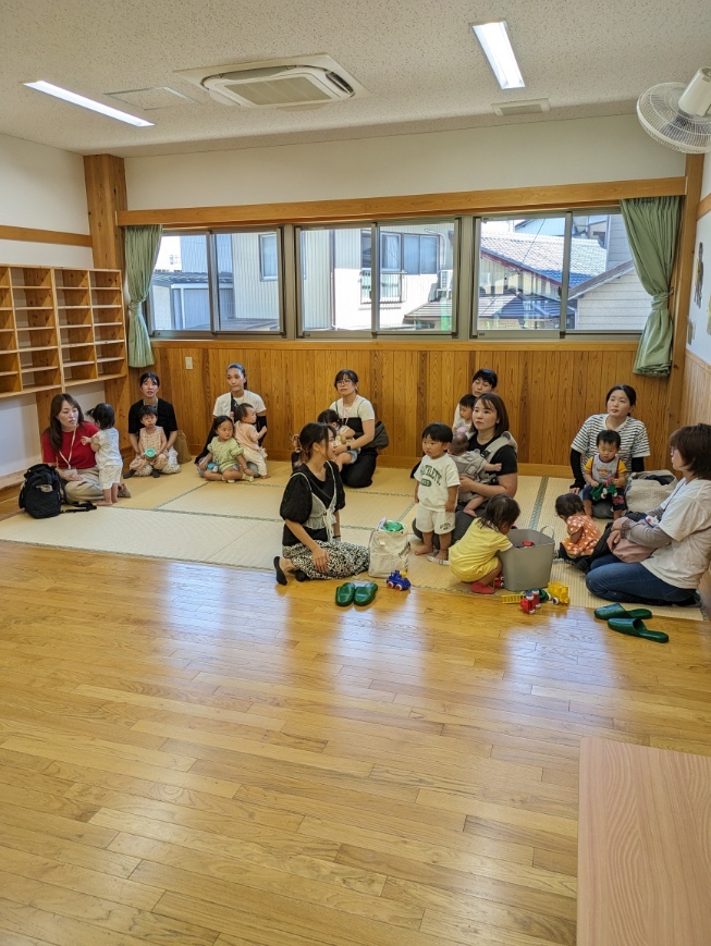 恵那市中央乳幼児学級(長島・大井・東野・三郷・武並)では0歳~2歳時親子対象に毎月様々な活動をおこなっています。現在 組ほどが活動に参加しています。 9月3日は、乳幼児学級の参加者9組がおさしま二葉こども園に行きました。園長先生のお話を聞き、園内の見学をしました。