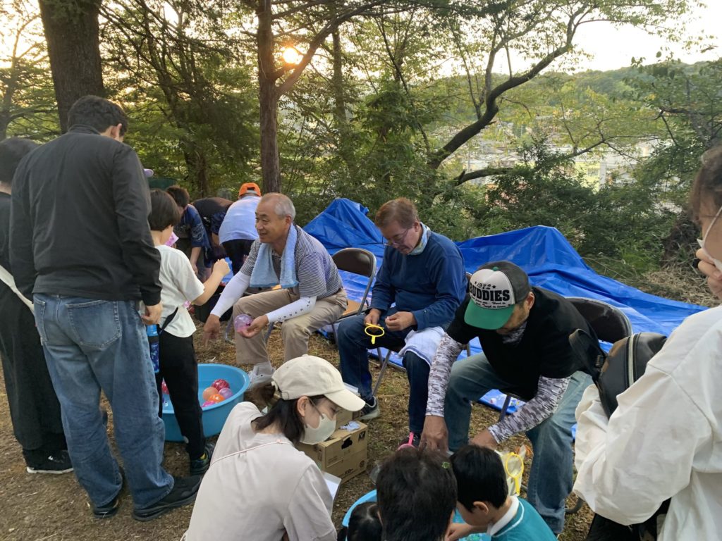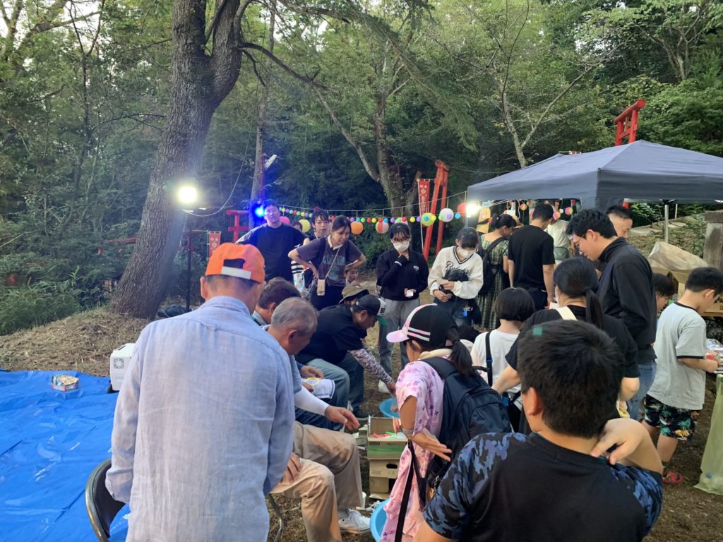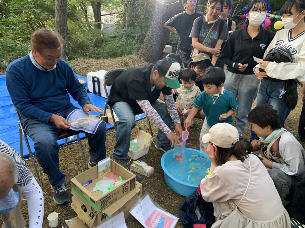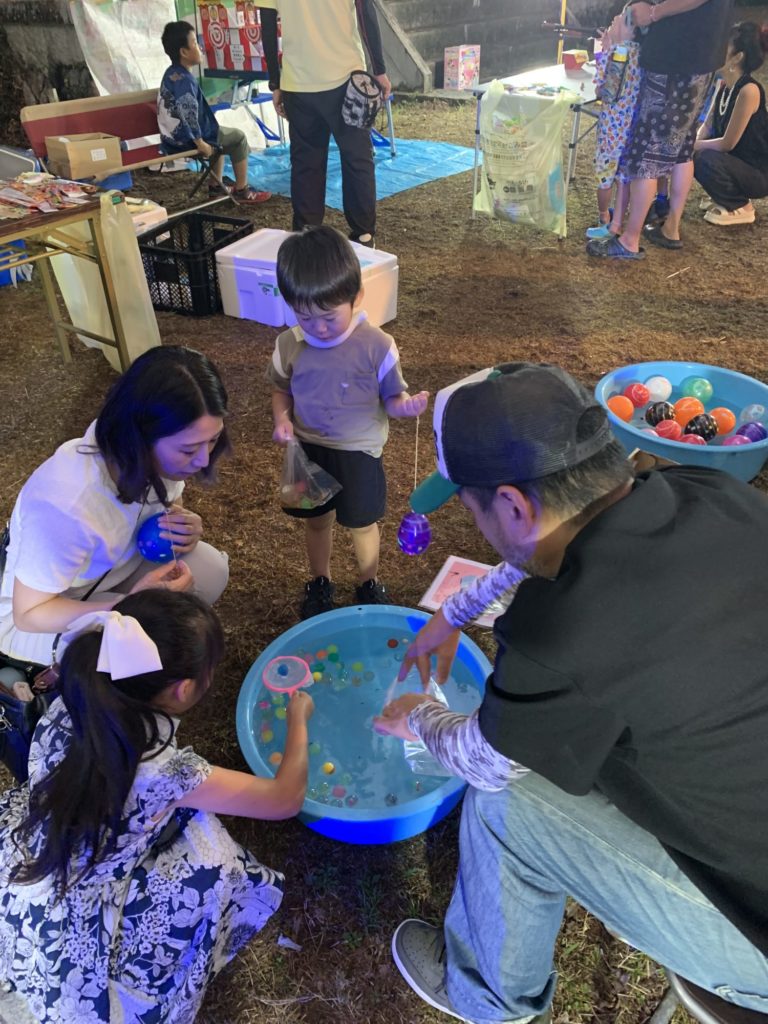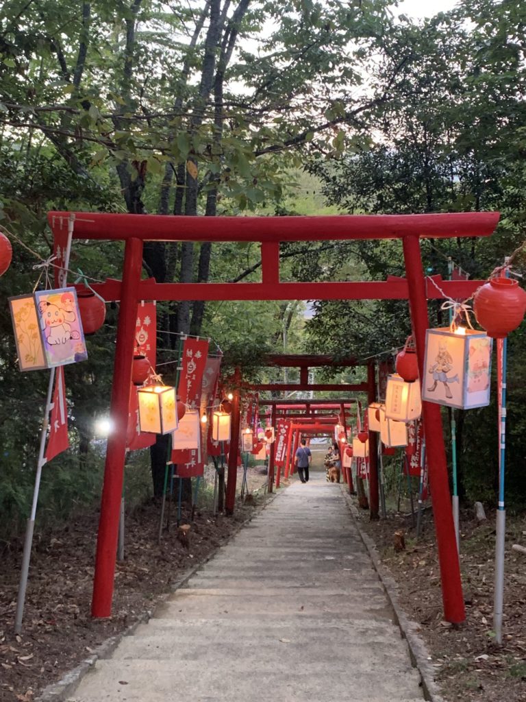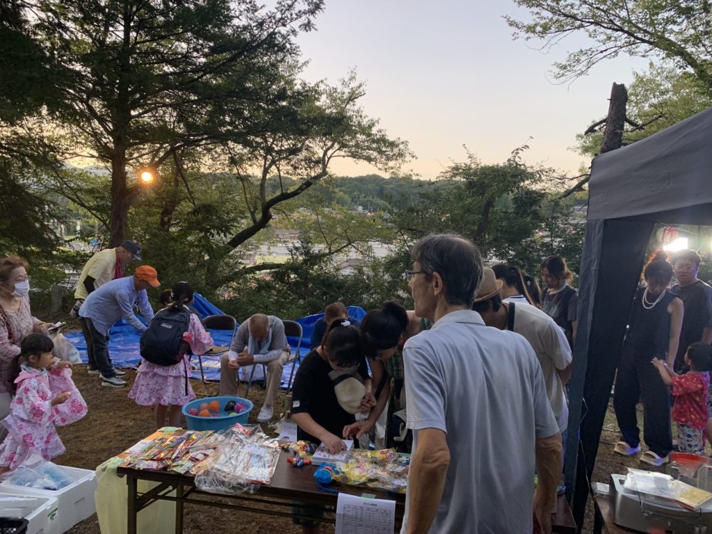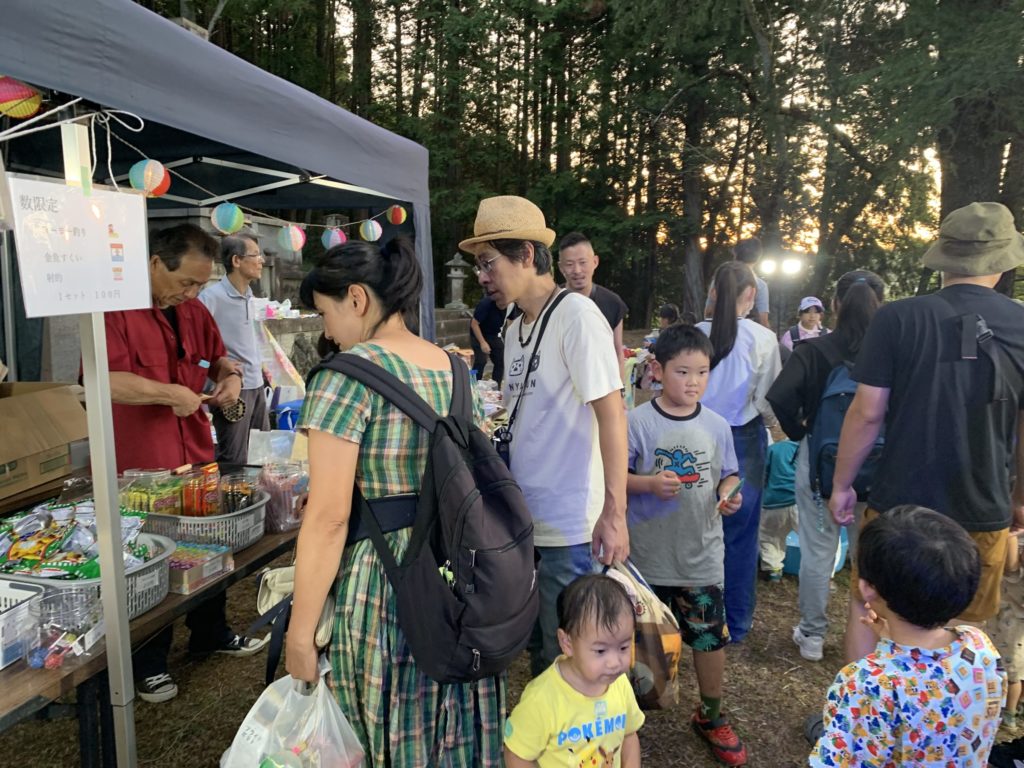 9月6日(土)中野豊玉稲荷二十二夜様で鳥居にたくさんの行燈に灯が点りました。今年は階段の途中で初めて中野村縁日を開催。夕方5時から始まった縁日には、射的や風船釣り、スーパーボールすくい、駄菓子の販売などに家族ずれや子どもたちがたくさん来てくれました。浴衣姿の子もいて、縁日の風景に色を添えてくれました。