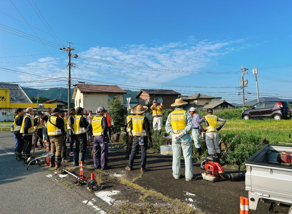 6月29日(日)大洞南区では、26人が参加して、みんなの道愛護事業の清掃(草刈りとゴミ拾い)を実施しました。2時間程度で無事終了しました。