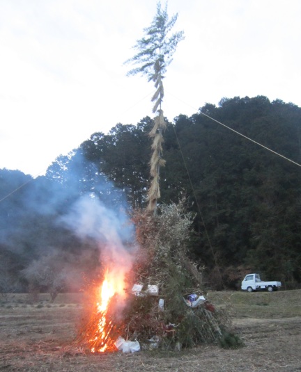 永田区では、1月11日(日) 7時に恒例のどんど焼きを行いました。これは、永田どんどの会(主催)と永田区(協賛)が行っているもので、今回は事前にライン(ながなび)による参加の呼びかけや、子どもへのプレゼント、参加者にはお餅を用意するなど、色々と工夫をした結果、昨年のほぼ倍の70人近くの区民が集まってくれました。特にお子様連れでの参加が目立ち、ラインの効果を実感できました。