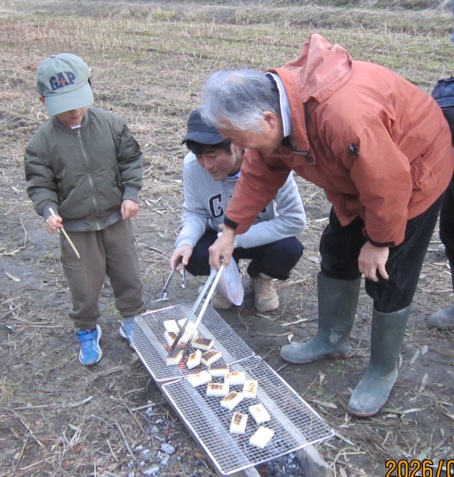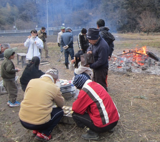 参加した皆さんは、どんど焼きの残り火でお餅やウィンナーなどを焼くなど、それぞれが自分流で楽しんでいました。
