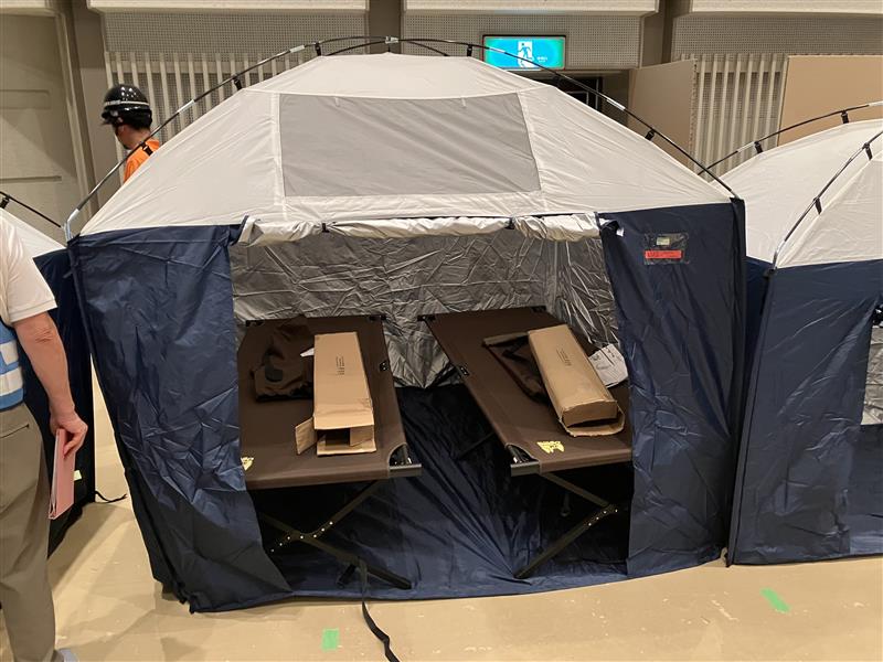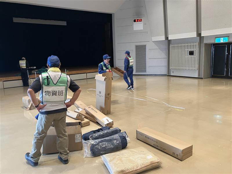 長島町自主防災会議では、長島振興室に現地対策本部を開設。恵那文化センター集会室に避難所開設と運営訓練をしました。簡易テントや簡易ベットの組立、救護班・食料班・物資班などに分かれて運営の確認などを行いました。