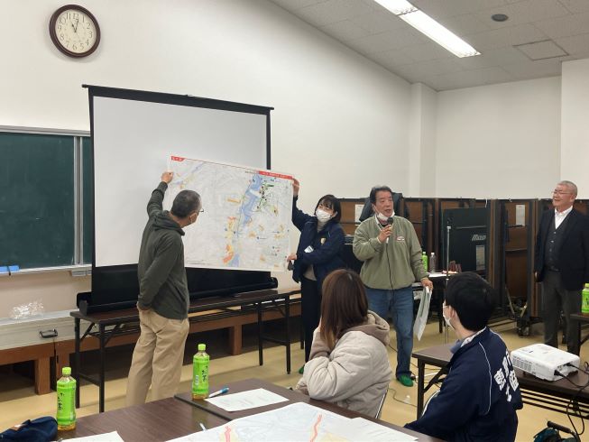 続くグループワークでは、地図を囲んで地域の資源や災害リスクを書き出す作業を行いました。 「どのように避難すべきか」を机上で改めて確認する中では、